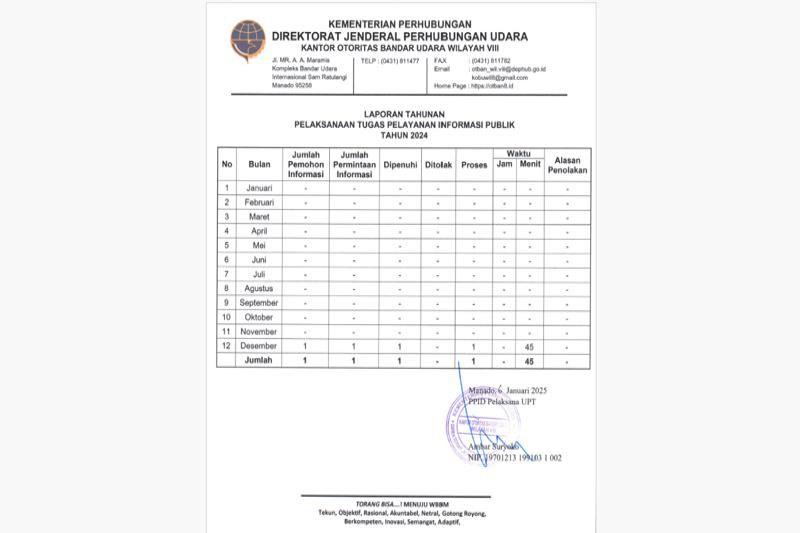Dalam rangka modernisasi pelayanan publik dan kebiasaan baru pandemi Covid-19, Otoritas Bandar Udara Wilayah VIII Manado meluncurkan Layanan Berbasis Online